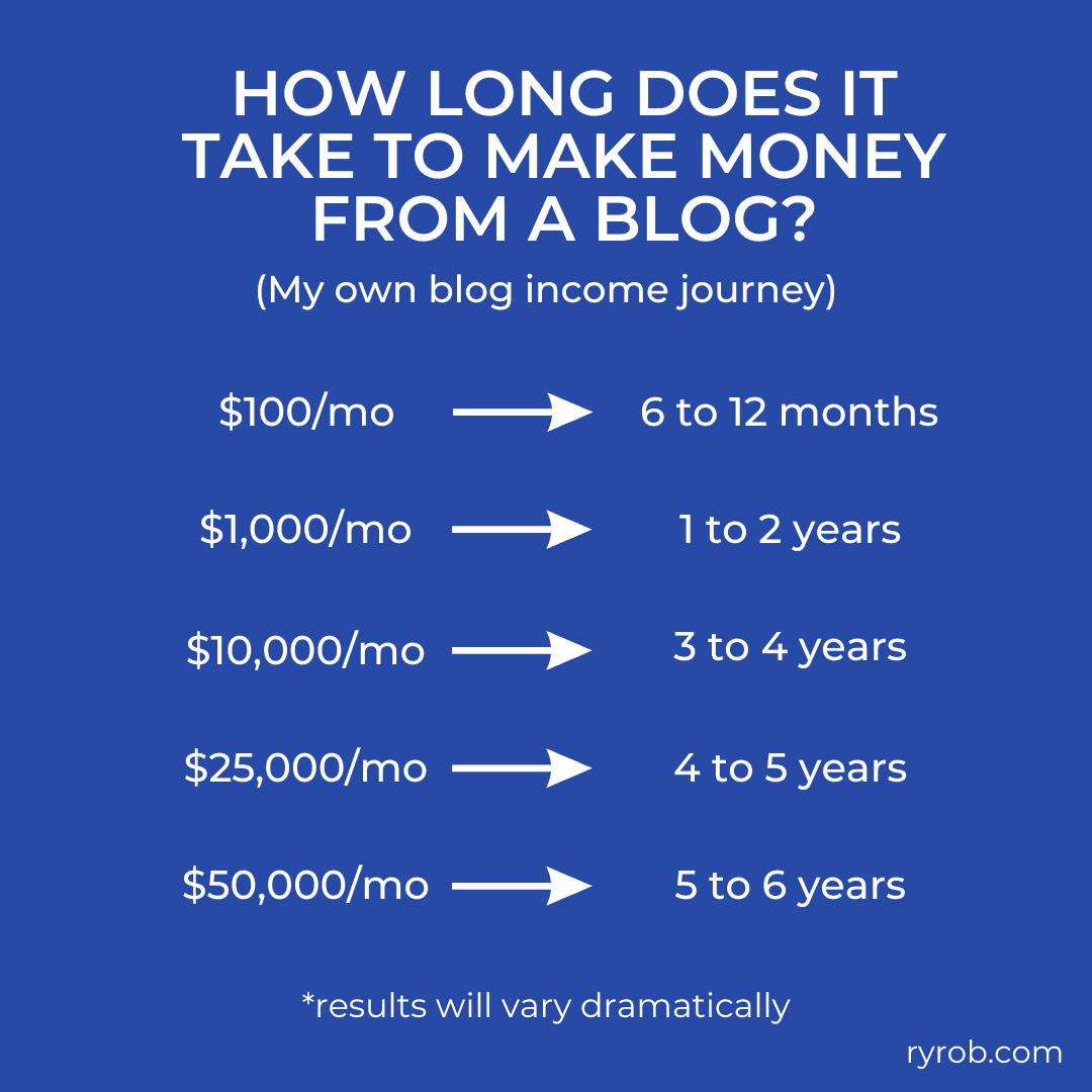 From my detailed guide on how long it takes to make money blogging, here’s how I like to think about setting realistic expectations for earning from your blog: