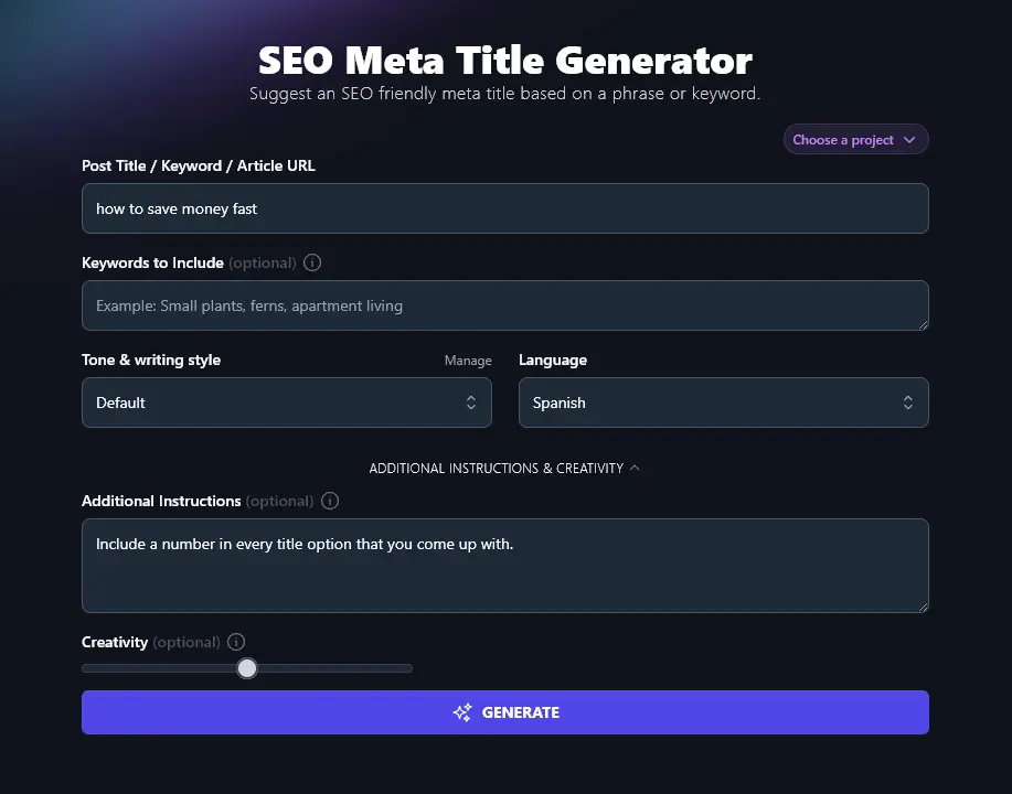 We created the meta title tool with multiple use cases in mind. It’s for bloggers, content creators, content marketers, SEO professionals, small business owners, and anyone else who needs effective meta titles for their blog posts, product pages, or other website content.