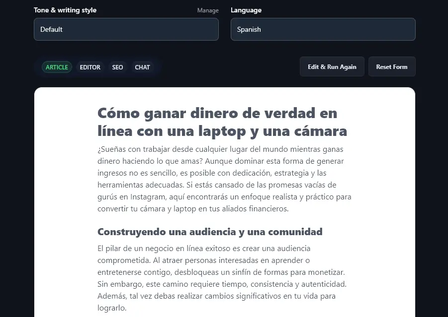 - The Article Writer: draft a full-length blog post from just a keyword or idea