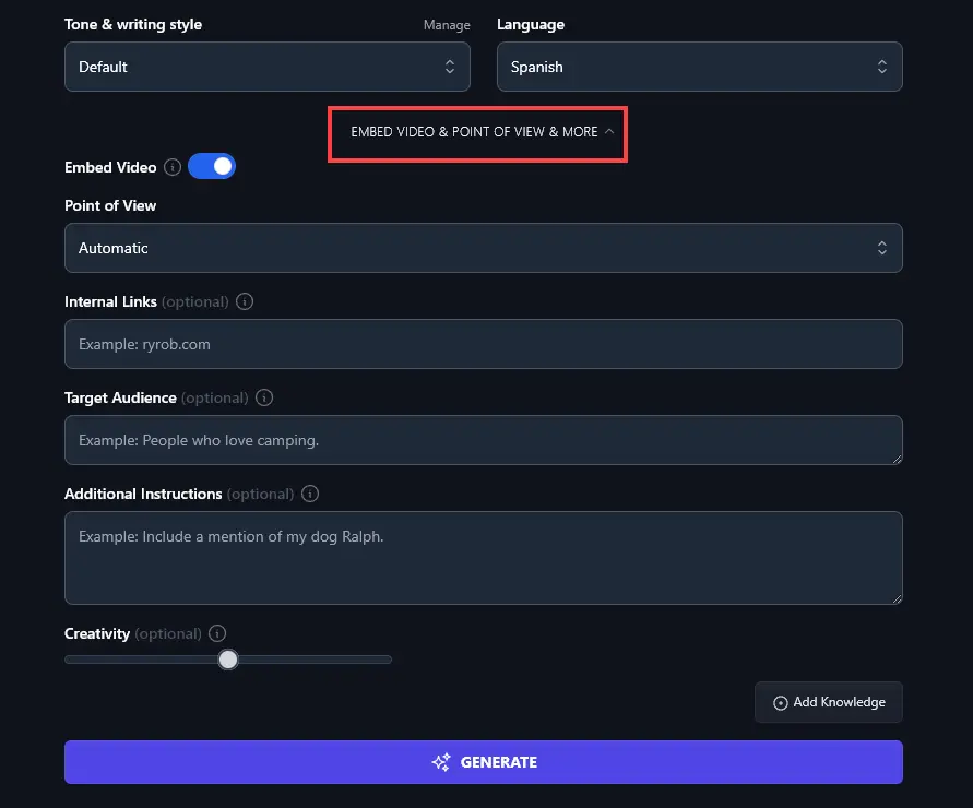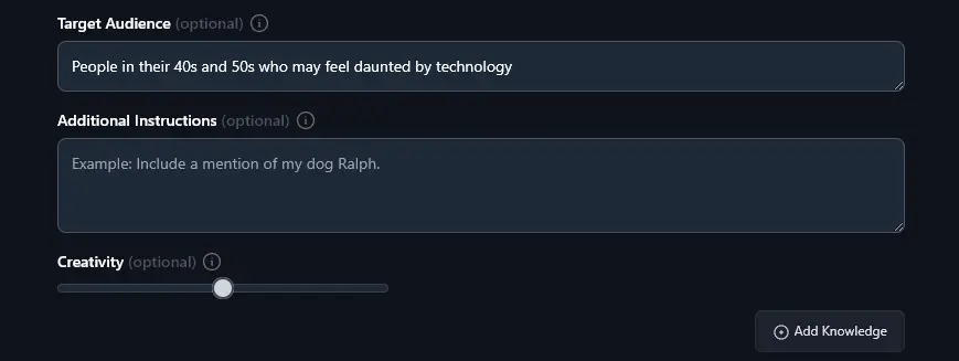 You can specify a target audience for your post—helping the AI to tailor the content specifically to that audience’s needs and preferences.