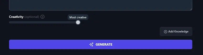Finally, you can choose how “Creative” the AI should be. This essentially determines whether the AI should be predictable or unpredictable when writing your post. The more creative you ask it to be, the more unusual the generated blog post will be.