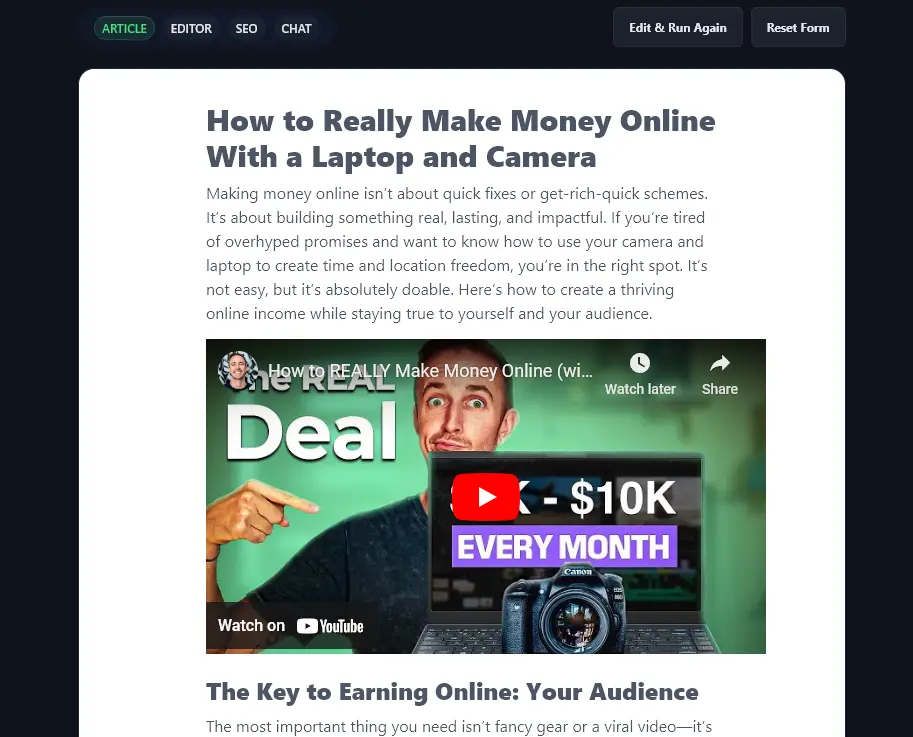 When we created the video to post tool, we had in mind both YouTubers and bloggers. Whether you’re a YouTube creator who wants to build a profitable website and business or a blogger looking to repurpose content, it should be a great fit. We had all sorts of use cases in mind, from repurposing a product tutorial to creating blog posts for beginners based on super-simple videos.